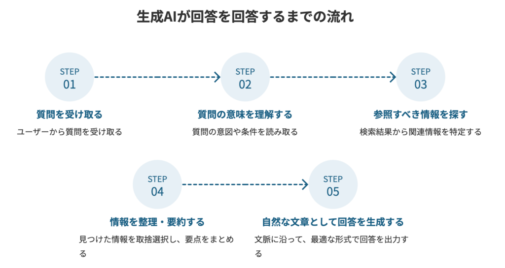 生成AIはどのようにコンテンツを引用し、回答を生成しているのか、主な流れを解説します。